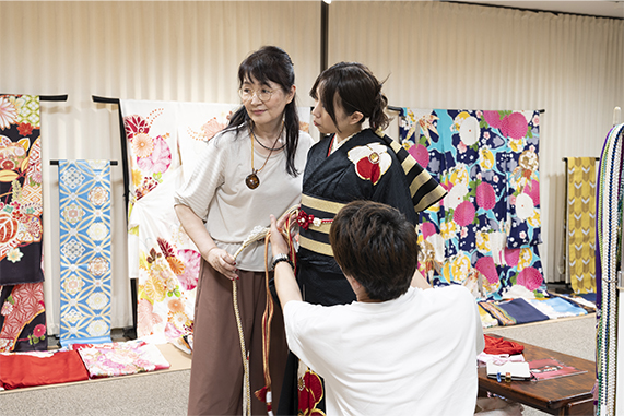 ご来店いただき、実際に着物を選んだり試着頂き、商品をお選び頂きます。