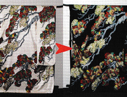 派手になってしまった色目や、色ヤケしてしまった着物をお好みの色や小紋柄に染め替えます。